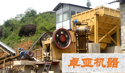 顎式破碎機(jī)的結(jié)構(gòu)主要有機(jī)架、偏心軸、大皮帶輪、飛輪、動顎、側(cè)護(hù)板、肘板、肘板后座、調(diào)隙螺桿、復(fù)位彈簧、固定顎板與活動顎板等組成,其中肘板還起到保險作用。該系列鄂式破碎機(jī)破碎方式為曲動擠壓型,電動機(jī)驅(qū)動皮帶和皮帶輪,通過偏心軸使動顎上下運(yùn)動,當(dāng)動顎上升時肘板和動顎間夾角變大,從而推動動顎板向定顎板接近,與此同時物料被擠壓、搓、碾等多重破碎;當(dāng)動顎下行時,肘板和動顎間夾角變小,動顎板在拉桿、彈簧的作用下離開定顎板,此時已破碎物料從破碎腔下口排出,隨著電動機(jī)連續(xù)轉(zhuǎn)動破碎機(jī)動顎作周期性的壓碎和排料,該破碎機(jī)實現(xiàn)批量生產(chǎn)。
